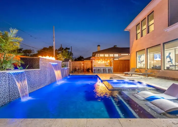 Situated nearly a 10-minute ride from the George W. Bush Presidential Library, 3-bedroom New! The Sunset Villa, Modern Luxury In Dallas includes a private pool, as well as a Jacuzzi to relax in.